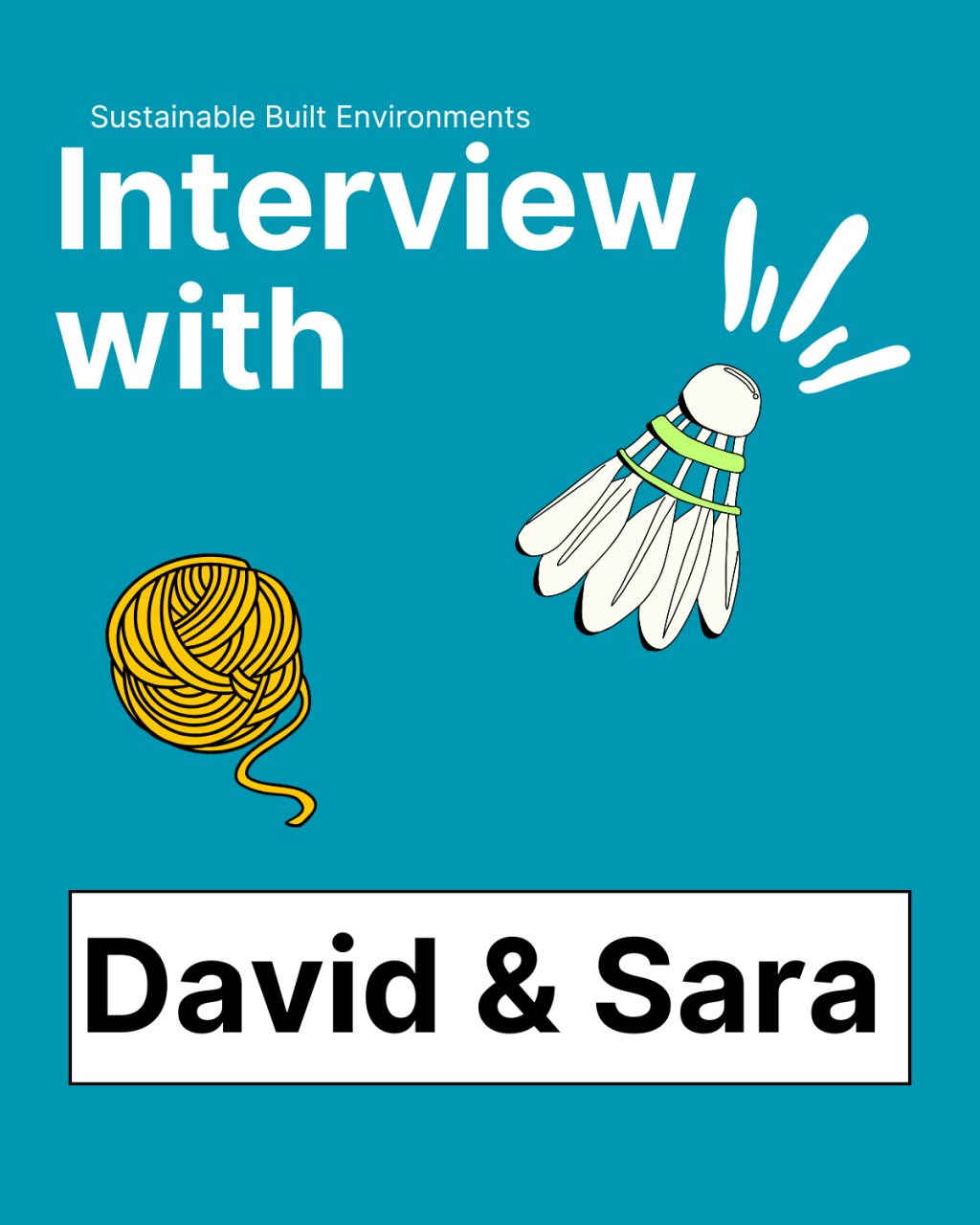 This week, we sat down with Sara Abouebeid and David Sindelar, two of our project assistants in the Sustainable Built Environments research group, to learn more about their work, research experiences, and perspectives on sustainability. From energy resilience to material stock mapping, Sara and David share their insights on the projects they are contributing to and what excites them about their research.